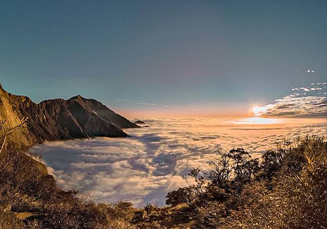 隨著太陽慢慢升起,稜線兩旁的景色開始清晰了起來